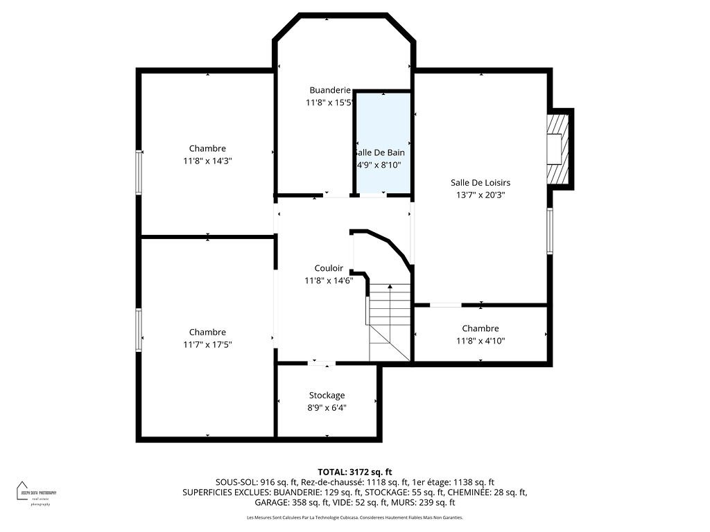 rez-de-chaussée (vestibule, corridors, salle de lavage,