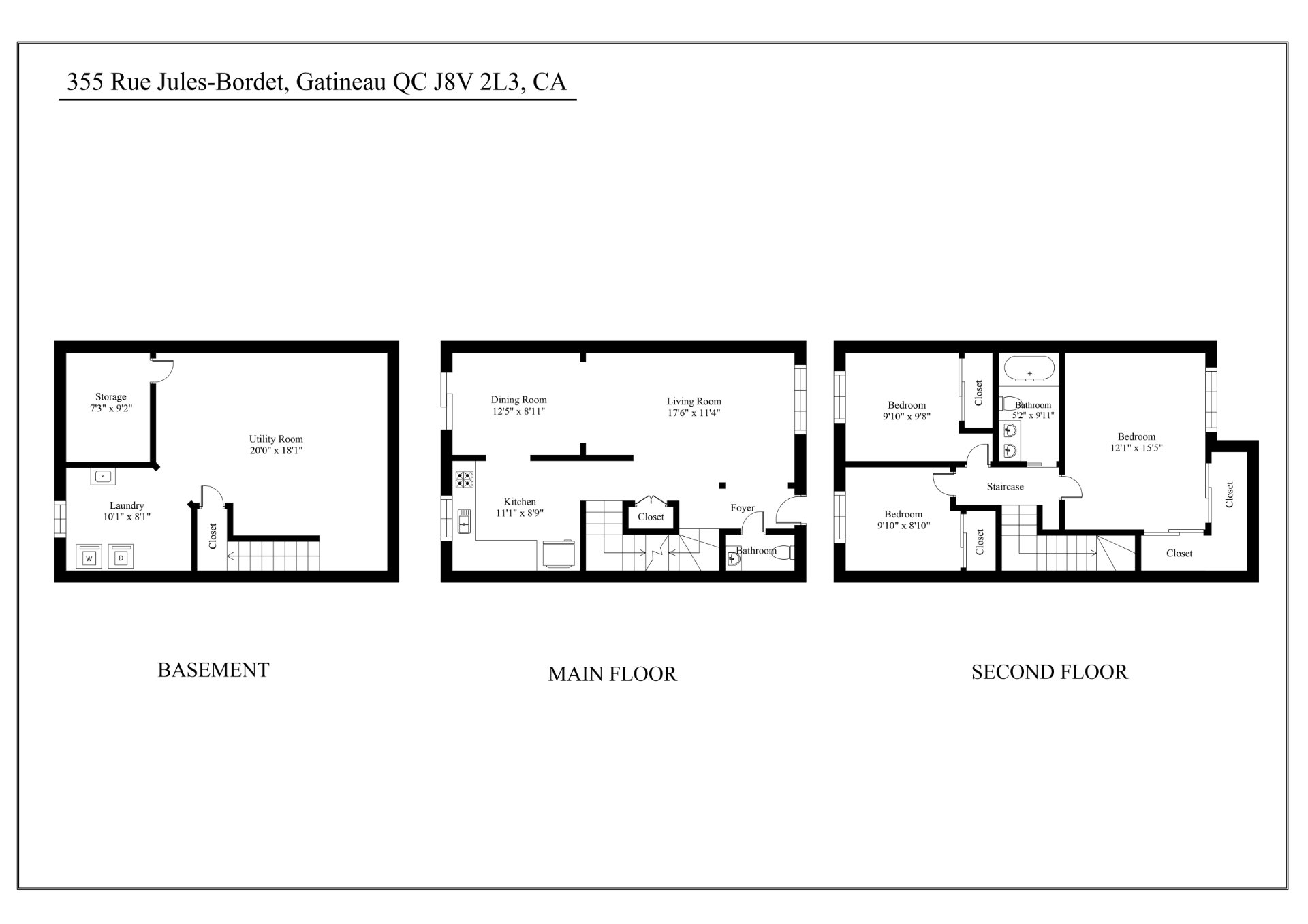 | Salle de bains | 5.2 x 9.11 P | 2ième étage | Céramique |